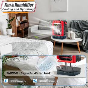 - Função de nebulização atualizada: o ventilador de nebulização para o exterior está equipado com um tanque de água de 1600 ml com 2 configurações de pulverização ajustáveis: 100 ml/h, 200 ml/h. Quando a névoa de água pulveriza na pele, diminui o calor da superfície da pele; se você adicionar gelo, haverá mais frio e diminuirá ainda mais a temperatura ambiente. Esse efeito de resfriamento duplo permite que você aproveite um ar mais claro e frio como estar nas montanhas e riachos, e diga adeus à secura e ao calor