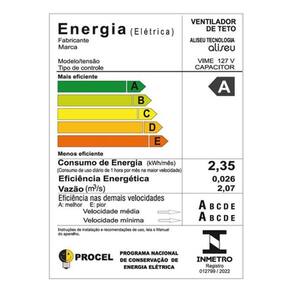 O ventilador de teto Aliseu Vime combina elegancia e desempenho, ideal para ambientes de ate 25 m2. Possui quatro pas de MDF revestidas com juta sintetica, garantindo um visual natural e sofisticado. Equipado com motor de 150 W e selo Procel A, oferece tres velocidades com rotacao maxima de 370 rpm e fluxo de ar de ate 2,35 m3/s. A iluminacao e feita por globo de vidro com soquete para duas lampadas E27 de ate 30 W nao inclusas . O produto acompanha controle de parede, e resistente a maresia e ja vem pre-montado, facilitando a instalacao. Indicado para uso residencial, possui certificacao INMETRO e de 24 meses. Resumo das principais caracteristicas: Marca: Aliseu Modelo: Vime Voltagem: 120V Potencia: 150 W Diametro: 105 cm Numero de pas: 4 Material das pas: MDF com juta sintetica Iluminacao: 2 lampadas E27 nao inclusas Velocidades: 3 Controle: de parede Fluxo de ar: ate 2,35 m3/s Rotacao maxima: 370 rpm Area recomendada: ate 25 m2 Peso: 5,8 kg Resistencia a maresia: sim Pre-montado: sim Certificacao: INMETRO : 24 meses Marca: Não Informado
