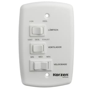 Marca: Korzen. Modelo: Preto/M 110V (52-3153) ou 220V (52-3253) Voltagem: 110V ou 220V Potência: 130W. Rotação Máxima: 180 a 460 rpm. Pás: 3 (MDF) laqueadas na cor do ventilador ou mogno. Lustre: Globo Taça em plástico injetado. Área de Ventilação: 20m². Iluminação: 1 lâmpada eletrônica até 15w cada, 1 Led até 10w. Controle de Velocidade: c3v (exaustão e ventilação com controle de velocidade mínimo, médio e máximo). Dimensões: Altura: 54cm. Diâmetro: 95cm. Peso Bruto: 3,095Kg. Peso Liquido: 2,727Kg.