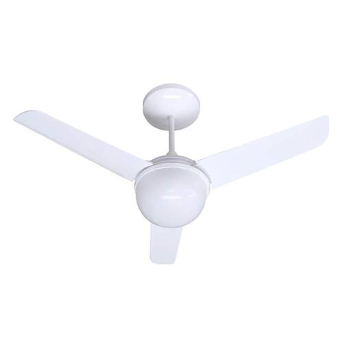 O Ventilador de Teto Aliseu é fabricado com termoplástico, metais e componentes eletrônicos de alta durabilidade e segurança, vem com controle de velocidade com três posições, lento, médio e rápido, além disso, possui sistema de sentido de giro que pode ser ventilação ou exaustão e o acendimento da luminária.