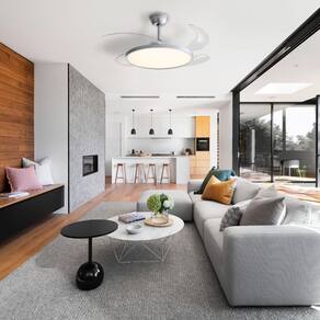 Com pás retráteis que ficam escondidas quando não estão em funcionamento, o Aliseu Lótus também serve como uma ótima decoração com sua luminária LED de 3 tonalidades.