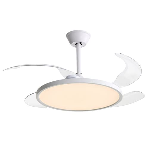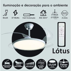 Com pás retráteis que ficam escondidas quando não estão em funcionamento, o Aliseu Lótus também serve como uma ótima decoração com sua luminária LED de 3 tonalidades.