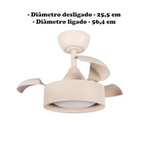 Com um design sofisticado, ele agrega ao ambiente mesmo quando não está em funcionamento. Tem apenas 56cm de diâmetro quando está ligado e possui motor supereficiente e luminária LED de 3 tonalidades.