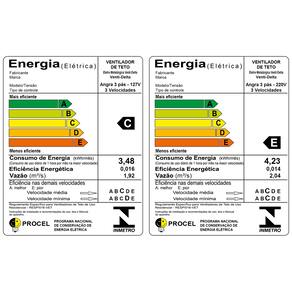 Potência: 130W Rotação Máxima: 180 a 460 rpm Pás: 3 pás em plástico de engenharia nas cores branco ou transparentes (SAN) Lustre: Globo Taça em plástico injetado Área de Ventilação: 20m² Voltagem: 127v ou 220v Iluminação: 2 lâmpadas eletrônicas até 15w cada, 2 Led até 10w Controle de Velocidade: c3v (exaustão e ventilação com controle de velocidade mínimo, médio e máximo) Cor: Branco Dimensões da Embalagem: (C x L x A): 60 x 37 x 21 cm Peso Bruto: 6,360 Kg Peso Liquido: 4,850 Kg Dimensão do produto montado: (Altura / Diâmetro) 44 x 96 cm