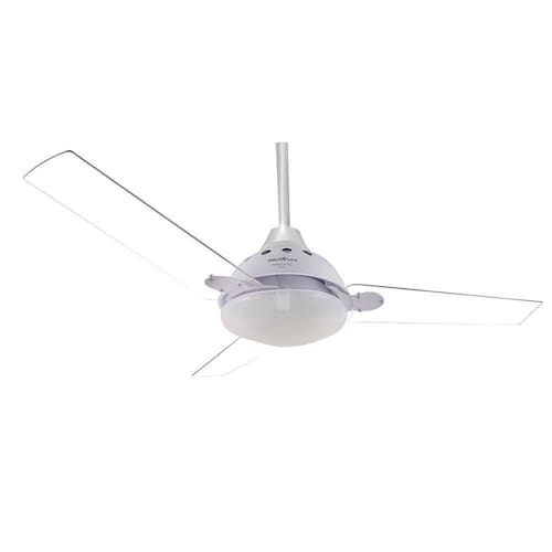 Um Ventilador de teto moderno e clean, com 3 pás em policarbonato transparente que garantem mais resistência e durabilidade.