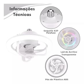 Ventilador de Teto com Luz RGB e 50W de Potência 360 Descrição do Ventilador de Teto com Luz LED 1. Iluminação Ajustável Este ventilador de teto vem equipado com luzes LED embutidas que oferecem três temperaturas de cor distintas quente, neutro e branco , variando de 3200K a 6500K. A funcionalidade adicional de luzes RGB cria uma atmosfera vibrante e ajustável para qualquer ambiente. Você pode personalizar o brilho e a temperatura da luz de acordo com suas preferências, garantindo a iluminação perfeita para qualquer ocasião. 2. Ventilação Personalizável O ventilador possui lâminas atualizadas com capacidade de oscilação de 360, permitindo um controle preciso sobre a direção e a intensidade do fluxo de ar. Com o controle remoto, você pode ajustar a velocidade do vento e a oscilação para desfrutar de uma brisa silenciosa, vento fresco ou um fluxo de ar mais forte, tudo sem sair do seu lugar. Ideal para manter-se confortável enquanto estuda, trabalha ou dorme. 3. Dois Métodos de Controle O ventilador pode ser controlado de duas maneiras: por meio do controle remoto ou pelo de ligar/desligar. Com o controle remoto, você pode acessar todas as funções de forma prática e rápida. No modo , você pode selecionar três modos básicos: primeiro, ligue a luz; em seguida, ligue o ventilador; ou, finalmente, ligue o ventilador e a luz simultaneamente. 4. Instalação Simples com Base E27 A base de rosca E27 facilita a instalação e das lâmpadas. Este ventilador de teto é adequado para uma variedade de ambientes, como garagens, salas de ferramentas e outros espaços. Oferece três velocidades de ventilação baixa, média e alta que podem ser ajustadas pelo controle remoto, permitindo que você ajuste o fluxo de ar conforme suas necessidades. 5. Segurança Aumentada Para maior segurança, o ventilador de teto possui uma proteção tipo gaiola que cobre as lâminas, reduzindo o risco de acidentes. Este design é especialmente recomendado para ambientes com tetos baixos ou áreas onde crianças estão presentes, oferecendo uma camada adicional de proteção contra possíveis impactos das lâminas. Marca: Não Informado