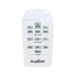 Ventilador de Teto Latina VT673 Branco com Controle Remoto O VT673 da Latina Eletrodomésticos é um moderno ventilador de teto, com design premiado e com máxima eficiência energética comprovada. Possui selo triplo A de eficiência em consumo de energia certificado pelo Inmetro. A aerodinâmica de suas pás foram desenvolvidas em parcerias com a USP, garantindo mais vento com menos ruído. Além disso, o VT673 proporciona excelente iluminação com economia de energia, pois utiliza 2 lâmpadas de led ou econômicas, base E27. Conta ainda com a função exaustão, 3 velocidades de ventilação e controle da intensidade da luz dimmer . Para seu maior conforto, todas as funções deste ventilador de teto podem ser facilmente acionadas através do controle remoto. Principais Características: Novo controle remoto moderno, fácil de usar e não precisa apontar para o ventilador. Acompanha suporte de parede; Muito mais vento, com menos barulho aerodinâmica desenvolvida em parceria com a USP: 1,2 m de diâmetro e 36m² de ventilação; Permite utilização de lâmpadas econômicas mais iluminação com menos consumo de energia; Máxima eficiência energética em todas as velocidades, com triplo A em consumo de energia certificado pelo Inmetro; Instalação simples, sem fios adicionais, não precisa passar fios pela parede. Controle da intensidade de iluminação dimmer 3 velocidades de ventilação e função sleep para desligamento automático Reversão inteligente: para, freia e reverte o motor automaticamente segurança e praticidade Linha com design premiado; A lâmpada deve permitir dimmerização. Não funciona com lâmpadas econômicas convencionais. Especificações: Tensão de alimentação V : 127V ou 220V Selo Procel: Sim Numero de pás: 3 Diâmetro total: 1,2m / 48 Área de ventilação: 36 m² Rotação máxima nominal : 230 RPM Controle remoto digital Velocidades: Controle em 3 níveis Reversão: Sim Inteligente Dimmer iluminação: Sim, a lâmpada deve permitir a função dimerização Controles Timer: Sim 30 / 60 / 120 minutos Controles Memória: Sim Controles Interface com o usuário: LED no controle e BIP no ventilador Iluminação Refletor: Refletor em aço pintado Iluminação Lâmpadas: 2 lâmpadas econômicas ou led, base E27 Iluminação Lente: Vidro fosco Instalação e montagem: Plug & Play Fácil montagem e instalação Cores disponíveis: Branco Dimensões do produto montado: 1,2m / Altura máxima: 0,45m Dimensões com emb. A x L x P mm : 205 x 285 x 650 Peso líquido kg : 5,5 Peso bruto kg : 6,5 Garantia: 1 Ano Obs. Contrate um profissional para instalação. Homologação Anatel: 025931304858
