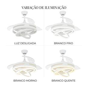 O modelo 001W une leveza e modernidade em um design clean. Suas pás retráteis e o LED integrado tornam qualquer ambiente mais elegante e confortável. 💡 LED 48W com 3 tons de luz (quente, neutro e fria) 💨 Motor DC 80W silencioso e econômico 📏 Ø108 cm ligado / Ø48 cm desligado Ideal para ambientes de até 20 m². Inclui controle remoto, manual e garantia.