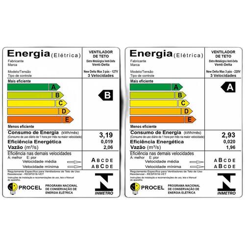 Especificações técnicas: Potência: 130W Rotação Máxima: 180 a 460 rpm Pás: 3 ou 4 pás MDF Área de Ventilação: 20 m² Voltagem: 127v Lustre : Sem lustre Controle de Velocidade: Rev 2T exaustão e Ventilação Garantia : 12 Meses Cores: branco Ean: 7899121834655