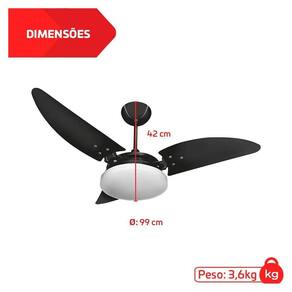 Ventilador De Teto Nina Plafon Led 3 Pás Preto 127V Ventex
