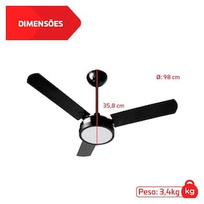Ventilador De Teto Citrino Led 127V Preto 3 Pás - Tron Ar mais fresco, em um ambiente elegante para você e sua família. Este Ventilador de Teto é potente, silencioso e possui qualidade e tecnologia, incluindo controle de inversão de giro que prolonga a vida útil. Suas hélices, inspiradas em turbinas de aviões, economizam energia e proporcionam alta potência e rotação, garantindo anos de uso. Uma das melhores opções de Ventilador de Teto no Brasil, perfeito para casas, apartamentos e escritórios com foco em arquitetura e design. DIFERENCIAIS 3 níveis de velocidade Suporte reforçado +Estável Luminária LED +Durabilidade Menor gasto de energia +Econômico Fácil instalação Ideal para residências, escritórios ou consultórios Embalagem própria para transporte ESPECIFICAÇÕES TÉCNICAS Tensão: 127V Frequência: 60Hz Potência: 130W Rotação máxima: 480rpm Área abrangente: 20m Função: Ventilação e Exaustão Controle: 3 Velocidades Material das pás: MDF Lustre: Plafon de LED Fluxo luminoso: 1350 lumens Temp. Da Cor: 5500K Potência da luminária: 18W DIMENSÕES Altura: 35,8cm Diâmetro: 98cm Peso: 3,4kg DE 12 MESES Marca: Não Informado Ean: 7897192730739