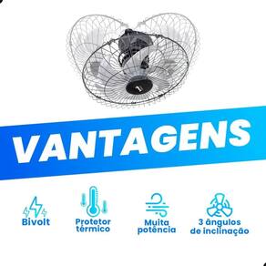Aparelho oscilante para ser instalado exclusivamente no teto. Com seu movimento orbital juntamente com a opção de 3 ângulos de inclinação faz com que ele atinja uma ampla área de ventilação.