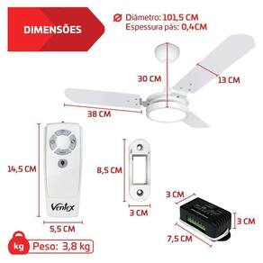 O Ventilador Valen LED da Ventex é altamente eficiente e possui recursos que garantem maior ventilação. Ele é equipado com pás maiores, um motor grande de 150W de potência e suporte de pás desenvolvido para oferecer estabilidade e resistência. A potência superior é garantida pelo motor de fabricação própria da Ventex, o que o torna uma escolha excepcional na categoria de ventiladores.Ele possui área abrangente maior, cobrindo até 30m, e suas pás têm inclinação de 30, o que aumenta a ventilação. Além disso, possui capa de rolamento que protege da sujeira e diminui o ruído do ventilador, tornando-o relativamente silencioso.Outra vantagem deste modelo é o seu painel LED de 18W 6500k, que proporciona uma iluminação excelente para diferentes tipos de ambientes, sendo especialmente indicado para espaços residenciais devido ao seu design sofisticado.Informações Técnicas Do VentiladorModelo: Valen LEDMarca: VentexNorma ABNT = NBR 14 532Voltagem: 220VPotência: 220V 180WFrequência: 60HzRotação Máxima: 520rpmÁrea de Ventilação: 30mFunção: Ventilação e ExaustãoControle: 3 VelocidadesEstrutura: Aço tratadoAcabamento: Pintura eletrostática a pó ou polímeroPás: 3 Pás em MDF com inclinação de 30Luminária: Painel LED 6500K 18WProtetor TérmicoInformações Técnicas Do ControleReceptor: Alimentação 127V/220V Bivolt automático;Transmissor: Alimentação 2 pilhas AAA não inclusas Frequência: 60Hz;Potência máxima do ventilador: 200W 127V e 400W 220V ;Potência máxima da lâmpada: 200W 127V e 400W 220V ;Dimensões Do VentiladorAltura: 30cmDiâmetro: 101,5cmLargura das pás: 13cmComprimento das pás: 38cmEspessura das pás: 0,4cmPeso: 3,7kgDimensões Do ControleAltura: 14,5cmLargura: 5,5cmItens Inclusos1 Ventilador de Teto Valen Led Ventex1 Controle de Parede1 Controle Remoto1 Suporte Fixação1 ReceptorGarantia De 12 Meses