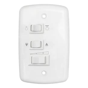 Conteúdo da Embalagem: 1 Motor 1 Haste e suporte para fixação 1 Manual de instalação 1 Lustre Plástico com soquete 3 Pás 1 Controle de parede 1 Conjunto de buchas e parafusos