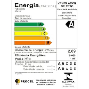 Consumo mensal: 3,37 kWh ( 1 hora diária de uso )
