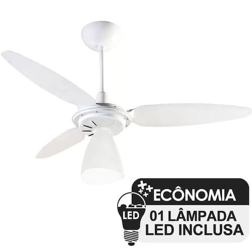 Ventilador de Teto Ventisol WindLight Branco 3 Pás, Cv3, 01 Lâmpada Led Inclusa