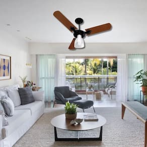 Design elegante com acabamento em mogno. Luminária integrada para iluminação prática. Três velocidades para ajuste do fluxo de ar. Sistema de segurança com protetor térmico e fusível. Ideal para salas, quartos e escritórios.