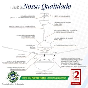 Ventilador de Teto Volare Cobre Vidro Dunamis Tabaco 220V Ventilador de Teto Volare Cobre Vidro Fechado Dunamis Pá Tabaco 220V Os Ventiladores Volare são desenvolvidos com tecnologia de ponta e design exclusivo. Modelo moderno, que facilita a integração a todos os estilos de decoração. Com pás em MDF laqueada com maior resistência e eficiência e motor com protetor térmico que desliga automaticamente em caso de superaquecimento, garantindo mais segurança. Além de uma excelente distribuição do ar por meio de motores robustos, velozes, silenciosos e com de dois anos. Tudo para que você tenha pleno conforto em seus ambientes. Ideal para ambientes de 25 a 30 m, considerar o pé direito até 3 metros. Estrutura em alumínio, não enferruja Vidro fechado soprado acetinado fosco, evita entrada de insetos, diminui necessidade de manutenção Motor silencioso, economico e robusto, com de 2 anos. Mais seguro, com protetor térmico. Pás em MDF laqueada Controle remoto opcional, adquirido separadamente.Conteudo da embalagem: 01 Ventilador de teto, 01 chave de parede e manual de instruções Soquete: 2XE27 Acompanha Lâmpadas: Não : 2 Anos: Motor; 1 Ano: Estrutura; 6 Meses: Pás e Chave de parede Classificação Procel INMETRO: A Voltagem: 220V Quantidade de velocidades: 3