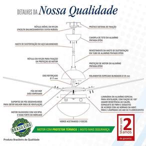 Ventilador de Teto Volare VD42 Branco Fosco Dunamis S3 3 Pás Branco O ventilador de teto da marca Volare, é desenvolvido com tecnologia de ponta e design exclusivo. Modelo moderno, que facilita a integração a todos os estilos de decoração. Com pás em MDF laqueada com maior resistência e eficiência e motor com protetor térmico que desliga automaticamente em caso de superaquecimento, garantindo mais segurança. Além de uma excelente distribuição do ar por meio de motor robusto, veloz e silencioso. Tudo para que você tenha pleno conforto em seus ambientes. Ideal para ambientes de 25 a 30 m, considerar o pé direito até 3 metros. Especificação técnica: Marca: Volare Modelo: VD42 Dunamis S3 Quantidade de Pás: 3 Estrutura das Pás: Pás em MDF laqueada Cor das Pás: Branco Corpo: Branco Fosco Voltagem: 127v ou 220v Acionamento: Controle de parede (opcional controle remoto vendido separadamente) Número de Velocidades: 3 Potência do Motor: 120w Frequência: 60Hz RPM do Motor: 404 Área de Vazão: 2,62 m/s Selo Procel (Economia de Energia): A Soquete de Lâmpada: 2 x E27 Luminária: Vidro Acetinado com Acabamento Fosco Ajuste de altura: Não Silencioso: Sim Função Exaustão e Ventilação: Sim Dimensões do ventilador: 48cm de altura x 120 de diâmetro Conteúdo da Embalagem: 1 Ventilador de teto 1 Controle de parede 1 Manual de instalação Observação: contrate um profissional para instalação. Confira nossa linha completa de ventiladores para deixar o ambiente da sua casa ou escritório mais fresco e sofisticado.
