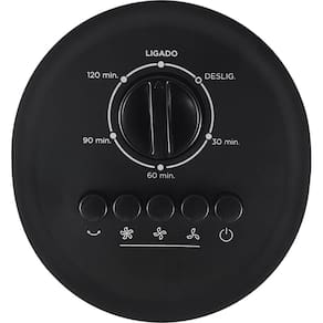 O aparelho conta com tres niveis de velocidade que permitem ajustar a intensidade do vento conforme a necessidade. Tambem possui temporizador de ate 2 horas, possibilitando programar o desligamento automatico para maior praticidade e economia de energia.