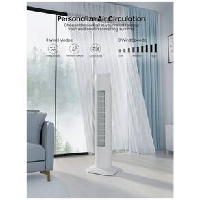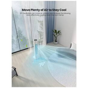 Vários modos de resfriamento o ventilador da torre vem com 3 velocidades de ar L, M, H e 3 modos de resfriamento natural, então venha e personalize suas necessidades de resfriamento personalizadas Este ventilador de torre esfria salas rapidamente a velocidades de até 7 m2. Com oscilação de 70 de largura, o ventilador oscilante sopra ar frio para todos os cantos. Mais e silencioso o ventilador silencioso tem um design sem lâminas, que não é apenas mais para proteger as crianças, mas também mais silencioso, sem intrometidos flutuantes nas pás do ventilador. O temporizador de desligamento automático com economia de energia pode ser definido de 0,5 horas a 7,5 horas em incrementos de 30 minutos, perfeito para uso noturno. Toque e controle remoto O ventilador de resfriamento tem uma aparência bonita, material resistente e uma superfície lisa e de qualidade. Há uma tela de controle de toque na parte superior, você pode controlá la facilmente com apenas um leve toque de seu dedo. Ao mesmo tempo, você também pode controlá lo remotamente, a distância do controle remoto pode chegar a 6 m2. Operação e movimentação fáceis O controle remoto permite o controle remoto do ventilador da torre sem pás com todas as mesmas funções do painel de controle. O ventilador de pé também é equipado com uma alça oculta, que não só permite que o controle remoto seja colocado em um compartimento, mas também é facilmente portátil, cabendo na sala, quarto sem ocupar muito espaço