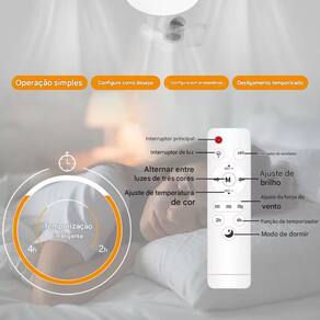 Use o controle remoto para ajustar iluminação e vento de forma fácil e rápida, ou conte com o controle tradicional se preferir.