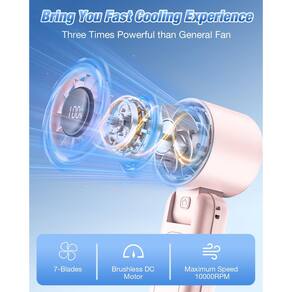 - Nosso ventilador portátil pode trazer rapidamente uma experiência legal como o vento natural. A combinação de um motor sem escovas e um design exclusivo de 7 lâminas melhora a velocidade do vento, o ventilador turbo portátil proporciona 3x mais fluxo de ar do que os ventiladores comuns, atingindo 10.000 RPM, proporcionando instantaneamente resfriamento ao nível da tempestade, cobertura de vento mais ampla, seja 40 °C de alta temperatura ao ar livre ou quente em ambientes internos, o ventilador portátil entra no "modo de resgate de verão" em um segundo