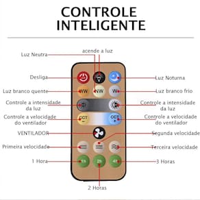 Com o controle remoto incluído, você pode facilmente ajustar a intensidade da luz, a velocidade do ventilador e até mesmo programar temporizadores para maior conveniência e conforto.