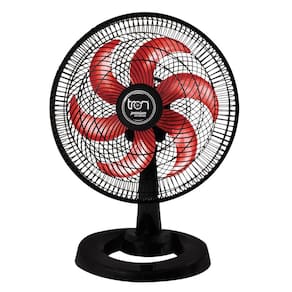 Ventilador Mesa Lorena Preto Oscilante 220V Pás Vermelha