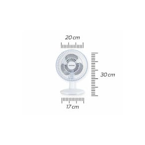 CARACTERISTICAS: Marca: Ventimais Linha: Mini Modelo: VMTV20CAP01 Cor: Branco/Prata Frequência: 60 Hz Nível de ruído: 25 dB Fonte de alimentação: Energia elétrica Possui inclinação vertical Tipo de ventilador: Mesa/Parede Quantidade de velocidades: 2 Cor da estrutura: Azul Cor das pás: Prata Material das pás: Plástico Quantidade de pás: 3 Material da grade: Plástico Diâmetro: 20 cm Altura : 23 cm Profundidade : 22 cm Largura : 18 cm Peso: 770 g