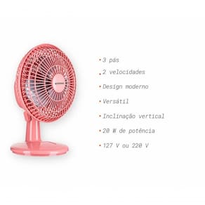 Ventilador Mini Turbo 20Cm 2 Velocidades Ventimais Cor Rosê Voltagem 110V