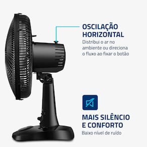 O modelo conta com 3 velocidades (mínima, média e máxima), adaptando-se facilmente a diferentes necessidades, desde uma brisa suave até um vento mais intenso. Seu sistema de ventilação opera com baixo nível de ruído, sendo ideal para momentos de descanso, estudo ou concentração.