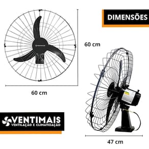 Especificações Técnicas: - Até 1500 RPM - Ajuste de inclinação - Vazão de 1,05 m³/s - Marca: Ventimais - Modelo: VOP60L01 - Potência: 147W - Voltagem: 220V