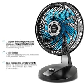 • 3 velocidades; • Hélice de 10 pás; • Potência de 174W; • Grade que obedece às normas de segurança (contato com partes móveis); • Oscilação horizontal automática com novo sistema de acionamento (botão integrado à carcaça); • Sistema de articulação para ajuste da inclinação vertical • Porta-fio; • Novo sistema de travamento entre grade frontal e traseira; • Alça na grade traseira para transportar o aparelho. • Motor com fusível térmico de segurança.