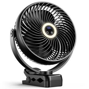 xasla Ventilador portátil de encaixe de 10000 mAh com luz, ventilador operado por bateria recarregável de 20 polegadas, 24H de longa duração, exibição digital silenciosa, 3 velocidades, rotação de