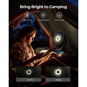 - Duração de 24 horas: é um ventilador de acampamento recarregável de longa duração 24H que pode trazer o melhor fluxo de ar fresco e refrescante. Com a função de carregamento rápido, leva apenas 4,5h para carregar totalmente. (O ventilador dura 17 horas quando o LED acende).