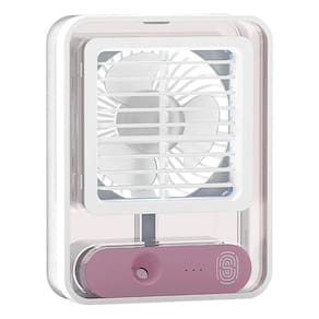 Ventilador Portátil Com Iluminação Umidificador Climatizador Com um design moderno e compacto, o Mini Ventilador Portátil é perfeito para quem está em movimento, além de ser muito silencioso. Ideal para uma noite de sono repousante ou de trabalho ou estudo ininterrupto. Melhor ainda, seu ventilador silencioso não será uma distração, garantindo que você permaneça focado, tranquilo e produtivo. Carregamento USB, e com três níveis de velocidade, este ventilador ajuda a resfriar, umidificar e purificar para obter ar fresco e limpo a qualquer hora, em qualquer lugar. Recomenda-se o uso de água gelada ou cubos de gelo para um melhor efeito de resfriamento. O ventilador possui uma seleção livre de direção do vento. O ângulo pode ser ajustado livremente para atender a diferentes posições e aproveitar a brisa. Além de conter uma luz interna, de uso opcional, que deixa o ambiente muito agradável.