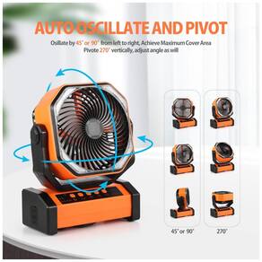 Recursos Integrados: Ventilador para Camping Operado por Bateria Recarregável, Controle Remoto, Cabo