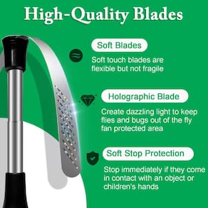- ?Lâminas de ventilador macias?O ventilador de mosca tem lâminas de alta qualidade flexíveis e de toque macio. Quando as lâminas tocam, o corpo irá parar imediatamente, uma vez que o obstáculo é removido, os ventiladores de mosca serão retomados imediatamente, eles são muito seguros, você não precisa se preocupar com ventiladores de mosca, pois as mesas machucarão mãos e crianças.