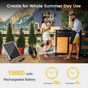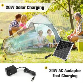 - OPÇÃO DE ENERGIA DO PAINEL SOLAR DE 20W: Este ventilador de chão recarregável com opção de carregamento solar de 20 W, normalmente de 6 a 10 horas para totalmente carregado de acordo com a intensidade da luz solar. O painel solar com cabo de 5 metros de comprimento é mais conveniente para uso externo.