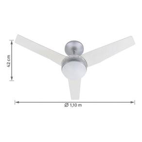 Refresque seu ambiente com muito estilo e tecnologia de ponta O ventilador de teto Aliseu Jet é ideal para ambientes de até 30m, como quartos e salas, proporcionando alívio para o calor até mesmo nas regiões litorâneas. Com três pás de policarbonato, o ventilador tem um diâmetro de 110,5 cm, uma altura de 42 cm e uma altura de haste de 20 cm, garantindo uma excelente vazão de ar de 2,06 m/s e uma potência de motor de 140W, além de três níveis de velocidade para personalizar sua ventilação. Com o Aliseu Jet, você tem a opção de controle de parede, controle remoto com alimentação de pilha AAA já inclusa e até mesmo controle pelo celular através do App. Além disso, ele conta com iluminação com soquete E27, permitindo que você instale até duas lâmpadas de até 25W não inclusas . O design moderno e elegante em cristal, com tonalidade incolor, combina perfeitamente com qualquer ambiente e decoração, e a cúpula de vidro garante um toque ainda mais sofisticado. Além disso, ele é resistente à maresia e pode ser utilizado em áreas costeiras sem preocupações. A limpeza é fácil e prática, utilizando apenas um pano úmido com água ou sabão neutro. Nunca utilize soluções abrasivas e lembre-se de desligar o produto da rede elétrica antes de realizar a limpeza. Garanta agora mesmo o seu Aliseu Jet e desfrute do máximo de conforto e tecnologia para o seu ambiente. Verifique as medidas e o local de instalação antes de realizar a compra.