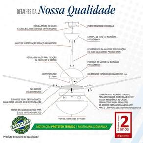 O motor tem protetor térmico que desliga automaticamente em caso de superaquecimento. Além de uma excelente distribuição do ar por meio de motores robustos, velozes, silenciosos e com garantia de 2 anos.