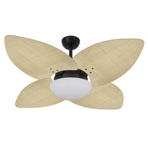 Ventilador Teto Volare Preto Vidro Dunamis Palmae Palha 220V Ventilador de Teto Volare Nero Preto Fosco Vidro Fechado Dunamis Palmae Natural 220V