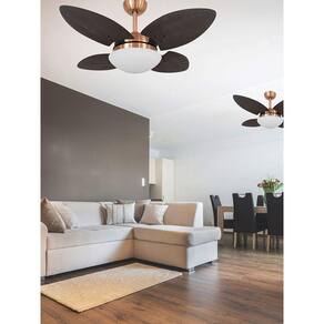 Ventilador de Teto Volare VD28 Mini Cobre Pétalo Palmae 4 Pás Tabaco O ventilador de teto da marca Volare, é fabricado com alta tecnologia e qualidade. O ventilador é desenvolvido com design inovador, o corpo em cobre e as pás em tabaco. Perfeito para a decoração da sua casa ou escritório, discreto ou rústico. Com 4 pás, o ventilador de teto é potente e silencioso, além de proporcionar dias mais frescos e agradáveis. Especificação técnica: Marca: Volare Modelo: VD28 Mini Pétalo Palmae Quantidade de Pás: 4 Estrutura das Pás: Pás em MDF laqueada, revestida em palha Cor das Pás: Tabaco Corpo: Cobre Voltagem: 127v Acionamento: Controle de parede opcional controle remoto vendido separadamente Numero de Velocidades: 3 Potência do Motor: 127w frequência: 60Hz RPM do Motor: 404 Área de Vazão: 2,17 m/s Selo Procel Economia de Energia : B Soquete de Lâmpada: 2 x E27 Luminária: Vidro Acetinado com Acabamento Fosco Ajuste de altura: Não Silencioso: Sim Função Exaustão e Ventilação: Sim Dimensões do ventilador: 43cm de altura x 91 de diâmetro Conteúdo da Embalagem: 1 Ventilador de teto 1 Controle de parede 1 Manual de instalação Observação: contrate um profissional para instalação.
