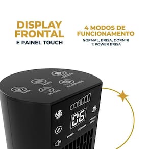 O Ventilador Torre Britânia BVT90A une potência de 75W, design moderno e tecnologia inteligente para deixar seus ambientes sempre frescos e agradáveis. Seu painel touch com display digital facilita o uso, e o controle remoto traz ainda mais comodidade no dia a dia.