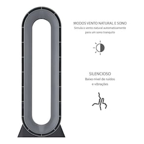 O Ventilador Torre Spirit 90cm redefine o conceito de ventilacao com seu design moderno e elegante. Combinando as cores sofisticadas de preto e prata, este ventilador se integra perfeitamente a qualquer ambiente, adicionando um toque de sofisticacao. Sua estrutura alta e esguia, aliada a tecnologia bladeless, confere uma aparencia clean e minimalista, livre de pas visiveis, o que o torna nao apenas um eletrodomestico funcional, mas tambem uma peca de decoracao contemporanea.