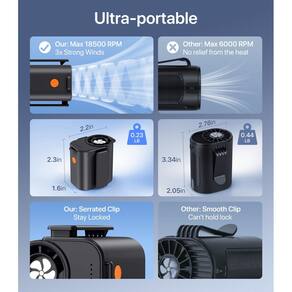 - Design de bolso ultraleve: pesando apenas 0,1 kg (metade do peso dos ventiladores de cintura tradicionais!) e dimensões compactas de 2,5 x 4,1 x 5 cm, este ventilador usável oferece portabilidade incomparável e conforto durante todo o dia para uso sem esforço em movimento.