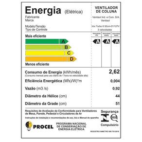 Potente, econômico e bonito. O ventilador de coluna Turbo 50cm da Ventisol é a escolha certa para você que busca por um ambiente mais refrescante e agradável. Seu design moderno e arrojado oferece ao ventilador coluna maior estabilidade, evitando riscos de acidentes. Esse ventilador ventisol conta com motor turbo que garante alta performance, além de oferece baixo nível de ruído, perfeito para que você converse, assista os seus programas favoritos ou durma tranquilamente. Suas hélices são aerodinâmicas para proporcionar alta ventilação e suas 3 velocidades permite que você adeque o nível de ventilação conforme seu gosto e sua necessidade. Ative e desative a função oscilação horizontal de forma fácil e rápida, pois o ventilador 50cm conta com oscilação automática. Sua grade fechada garante maior segurança durante o uso e para mais praticidade sua chave de ligação fica no capacete. A tecnologia grade wind-line proporciona melhor vazão e direcionamento de ar, perfeito para reunir sua família de forma agradável sem desconfortos causados pelo calor. O ventisol ventilador da Ventisol, possui ainda regulagem de inclinação manual e altura ajustável de 115cm a 130cm. Além de tudo isso, o ventilador 6 pás possui classificação A no INMETRO. Tenha ar mais refrescante para vpcê e sua família com o ventilador de coluna ventisol Turbo 50cm. Tipo de Ventilador: De Coluna | Cor: Preto Voltagem: 127V