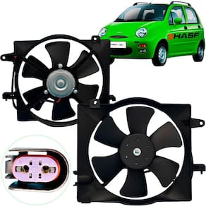 Eletroventilador com defletor Sem resistência Conector de 2 pinos fêmea Hélice de 6 pás c/296mm Voltagem de 12v C/chicote Motor c/102mm Sentido horário