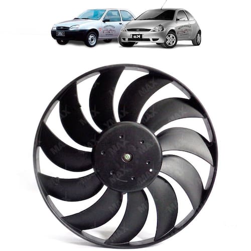 Especificações C/ ar condicionado eixo 8 mm motor 100 mm hélice 345 mm Hélice 11 pás Potência 160w Rotação sentido horário Conectores 2 pinos